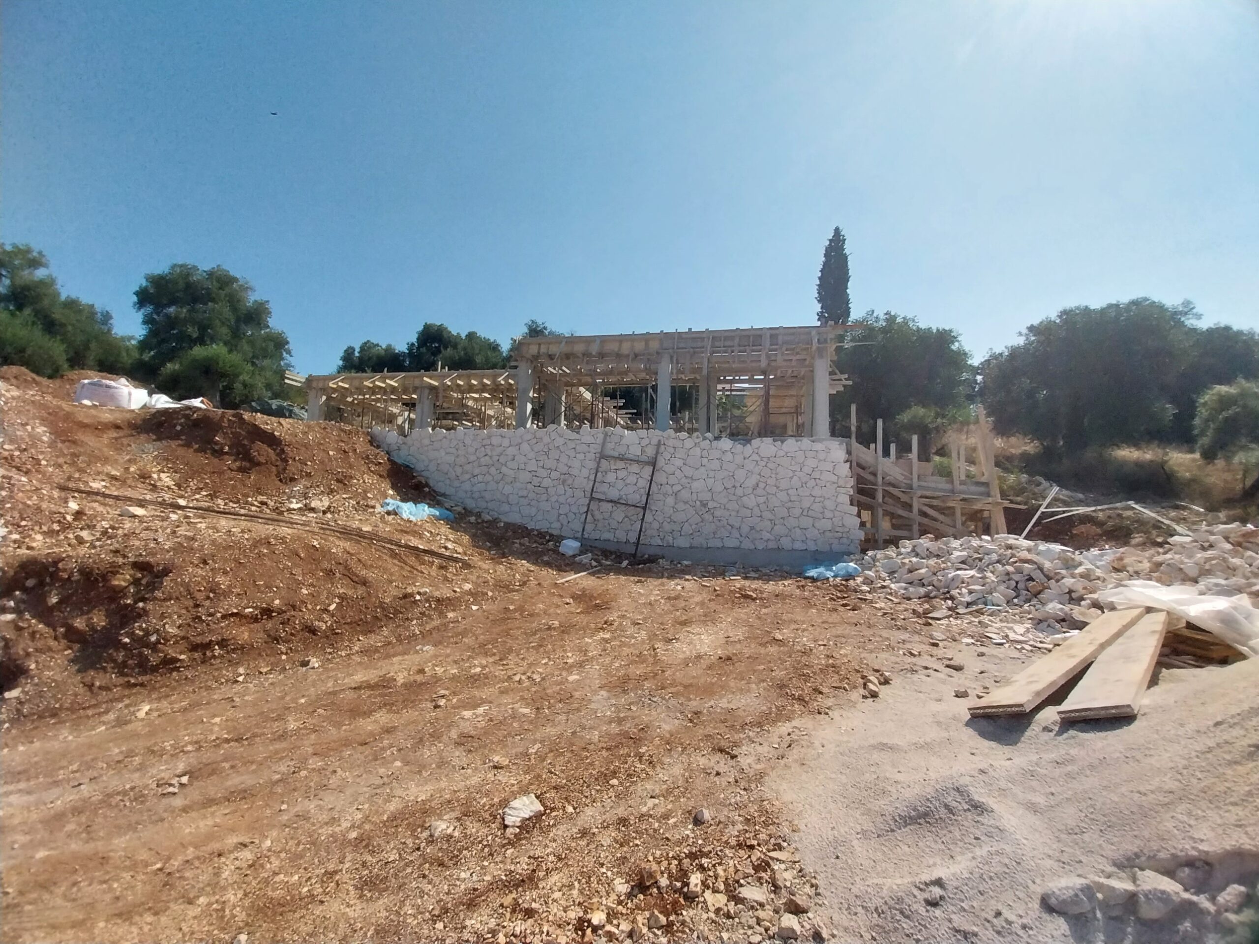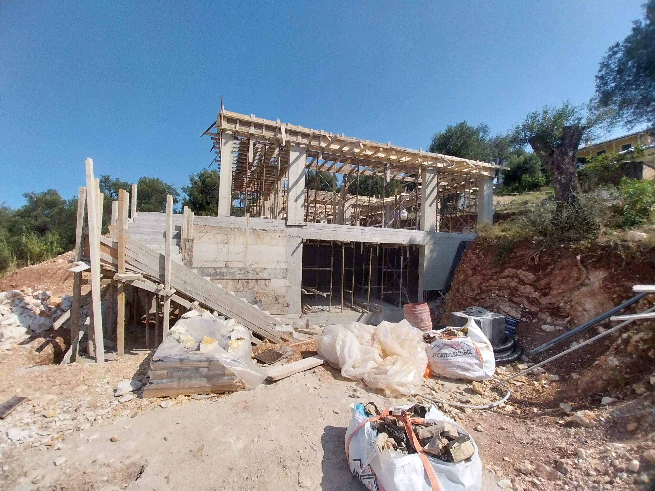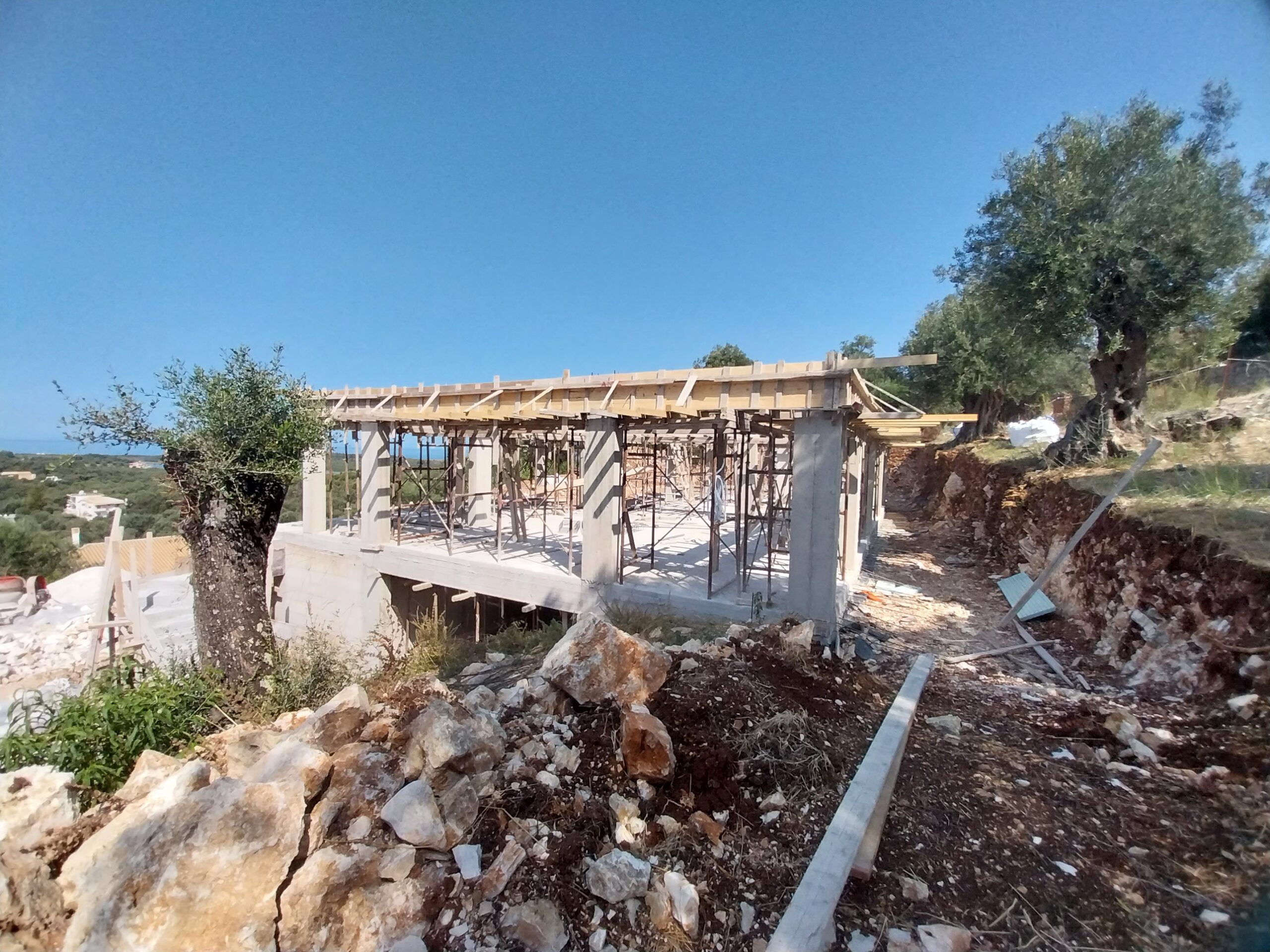 A modern single-level home designed for comfort, simplicity, and effortless living in the Corfu landscape. This project features three spacious ensuite bedrooms and an open-plan living, dining, and kitchen area that flows seamlessly onto a sunlit terrace. Below, a generous basement accommodates a large garage, machine room, and ample storage. A perfect example of how thoughtful design can combine functionality with relaxed Mediterranean living.