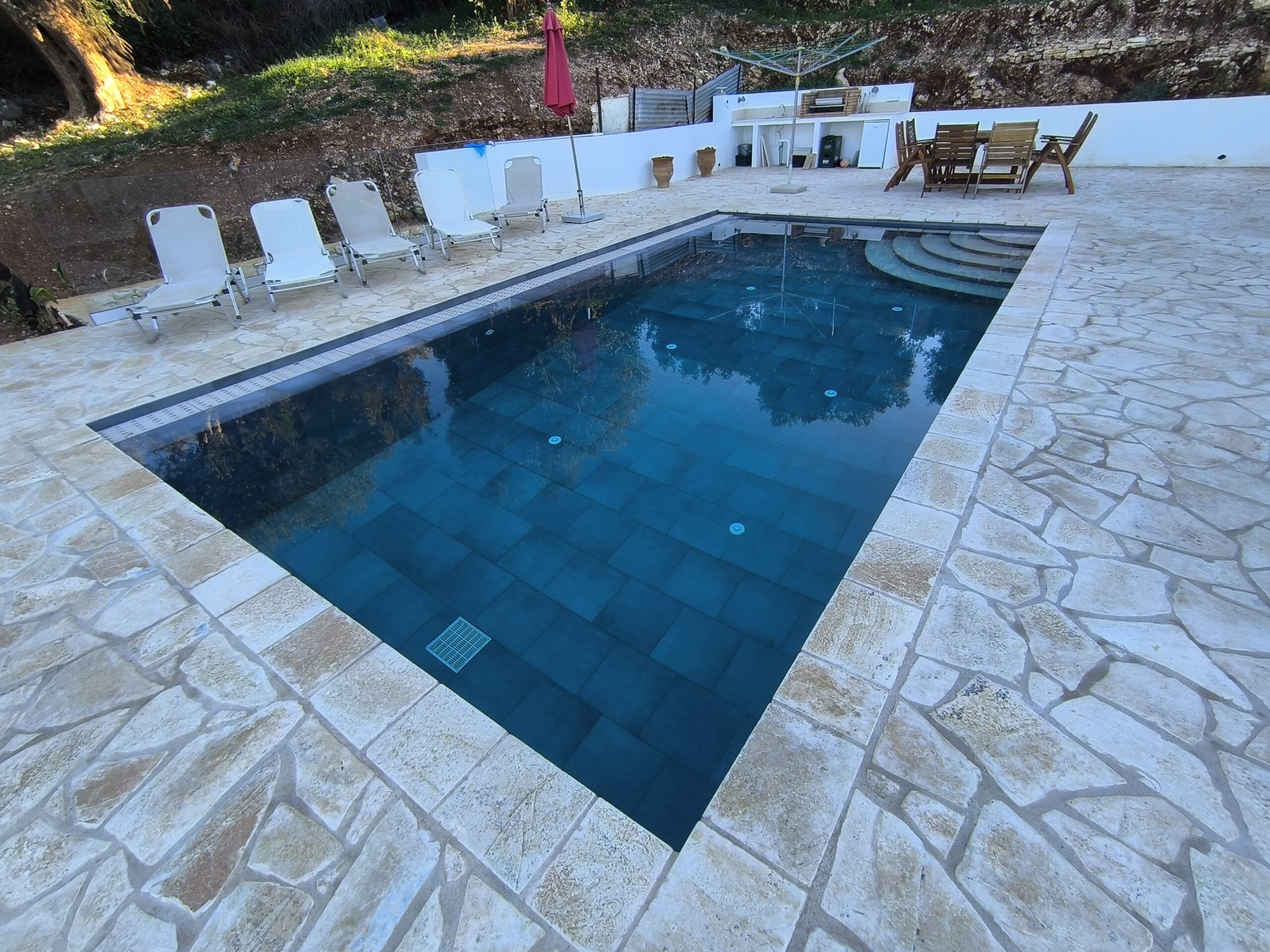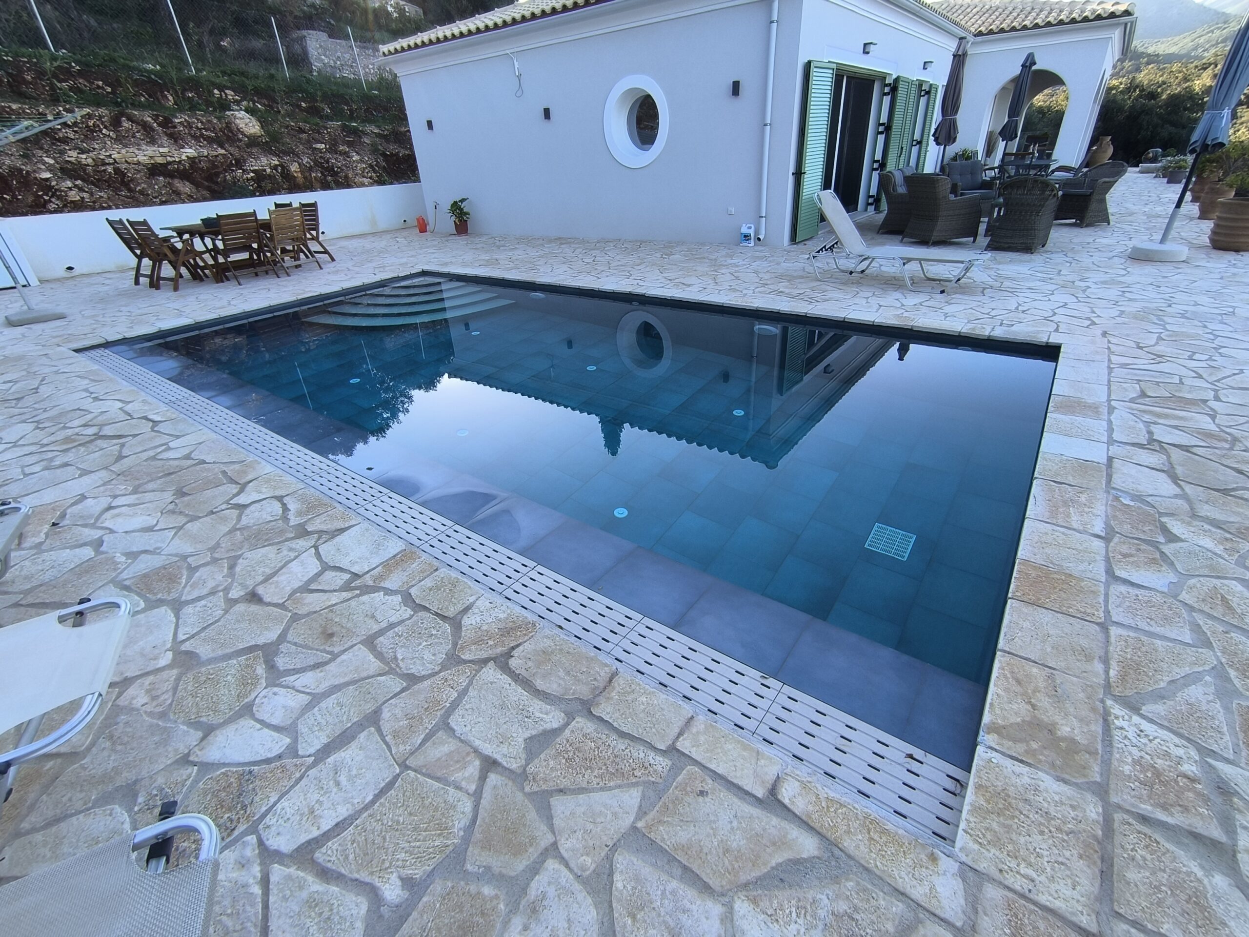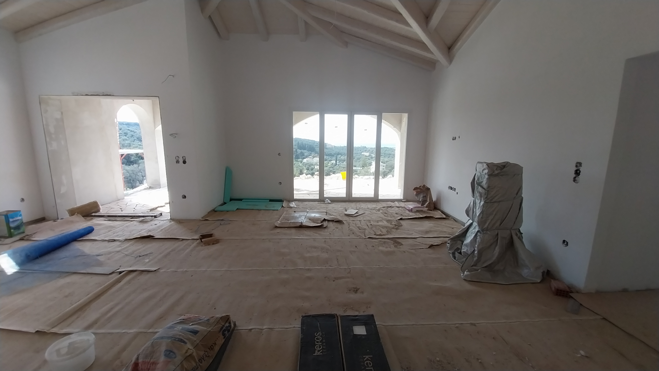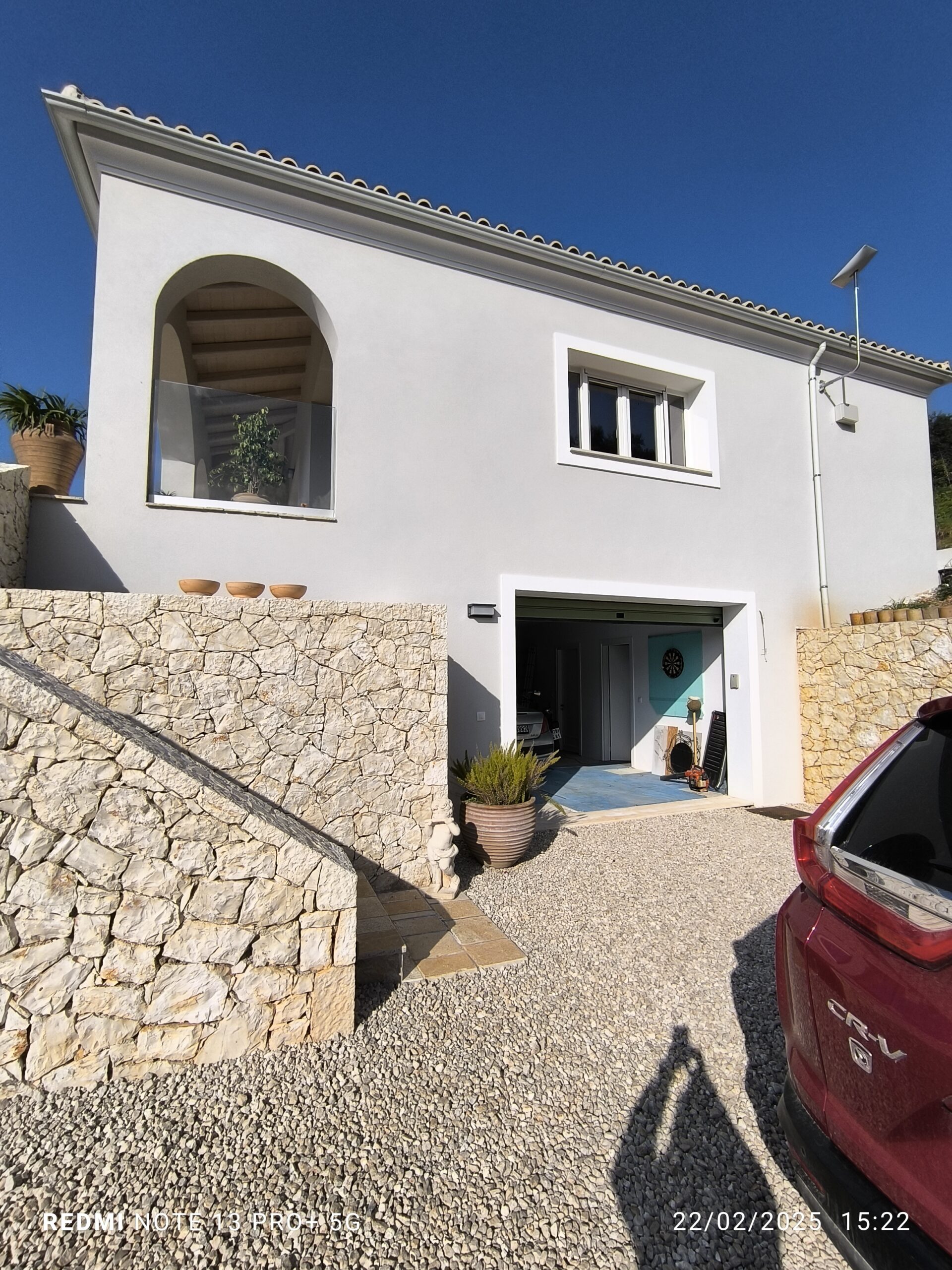 A modern single-level home designed for comfort, simplicity, and effortless living in the Corfu landscape. This project features three spacious ensuite bedrooms and an open-plan living, dining, and kitchen area that flows seamlessly onto a sunlit terrace. Below, a generous basement accommodates a large garage, machine room, and ample storage. A perfect example of how thoughtful design can combine functionality with relaxed Mediterranean living.